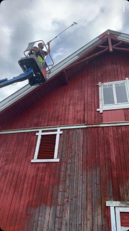 Endelig ble gavelveggen på Kirkestuelåven som vender mot kirka og kirkegården malt. De andre veggene er malt ved to tidligere dugnader, i 2018 og i 2024. Det er menighetsrådet og grendelaget som har jobbet sammen om dette prosjektet.