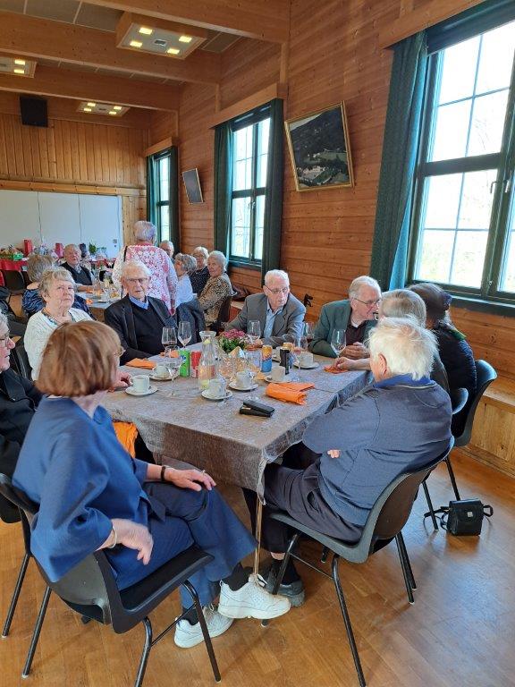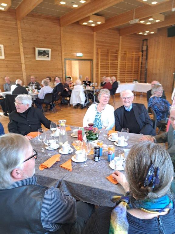 Som tidligere år ble det vårfest for 70+ på samfunnshuset. Det var ca 60 personer medregnet musikk og kjøkkenpersonale. I år serverte vi kyllinggryte med ris og salat samt et stort kakebord. Folk snakker, spiser og koser seg. Det kom folk fra nær og fjern. Det er trivelig at folk kommer igjen på festen vår år etter år, men også at vi kan ønske nye velkommen.