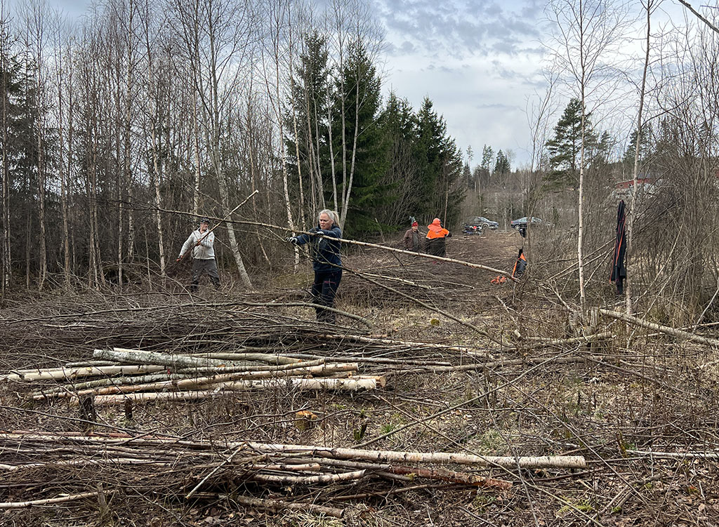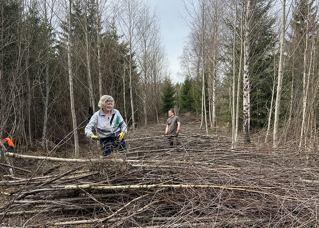 Det gir mye energi å oppleve at folk stiller på dugnad, og en kjenner på takknemlighet for at deltakelse i frivillig arbeid fortsetter å gå i arv. Og ekstra artig er det når nye fjes dukker opp slik som på kvistryddedugnaden i Brustadvika i dag. Vi var om lag 10 personer som fikk lagt kvist i haug, og Arne Krogstad er godt i gang med å kjøre det vekk. Noe virke var også såpass grovt at vi kan lage ved av det. Det skal vi utnytte slik at forrådet til fyring i gapahuken i Brustadvika kan bygges opp igjen.